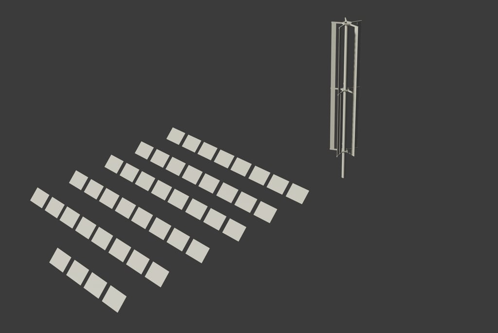Simple surface area comparison. The towers are vertically scalable, whereas the ground mounted panels are only scalable in horizontal directions.